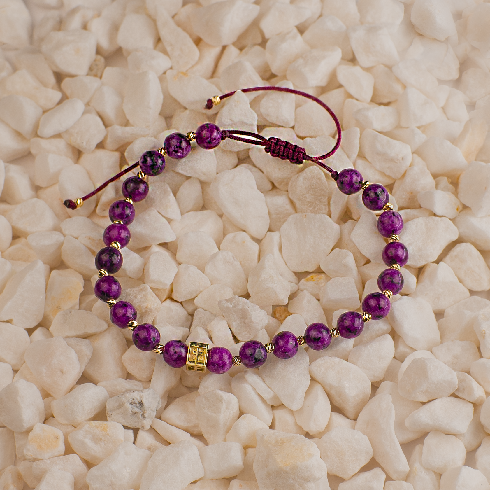 Brățară cu Șnur și Pietre Naturale Mov - Aur 585 (1.17g)