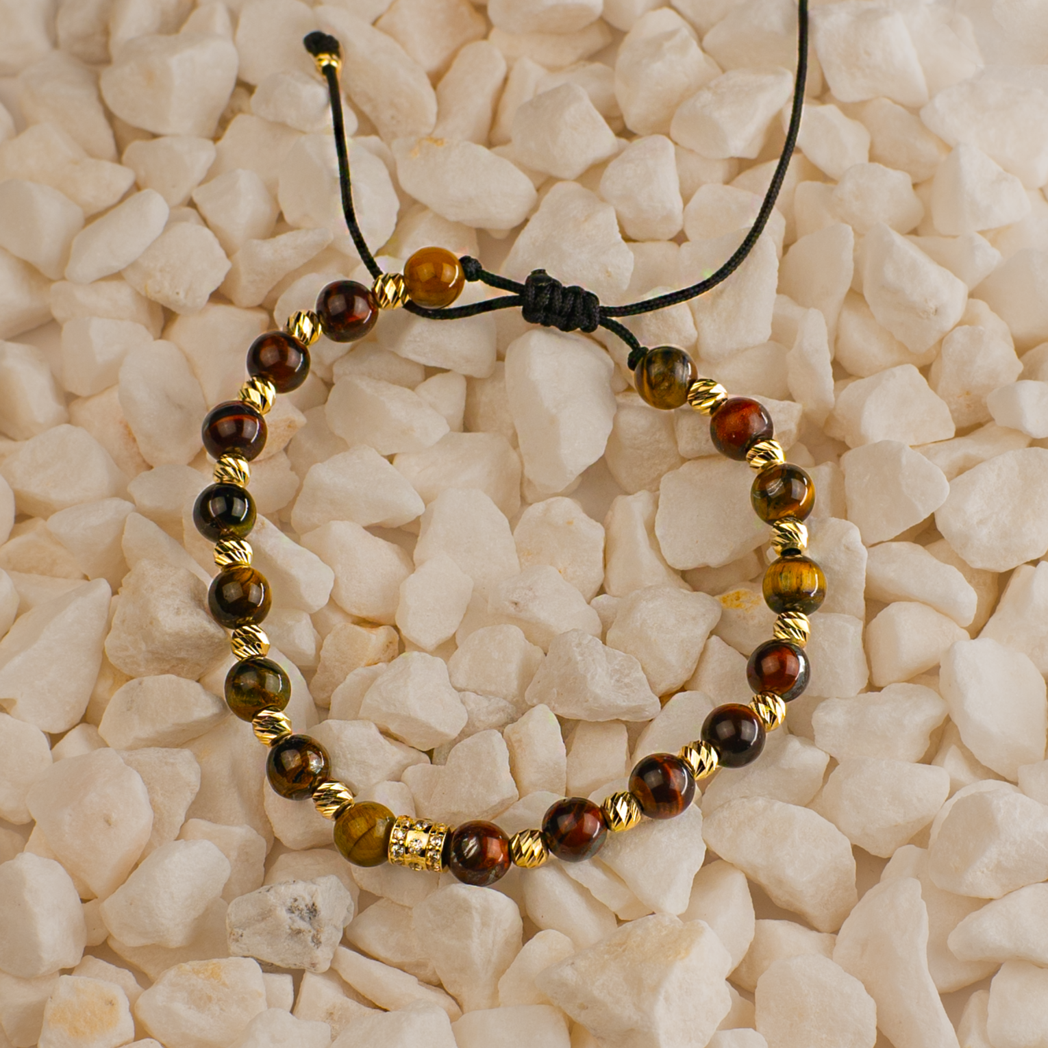 Brățară cu Șnur și Pietre Naturale Maro - Aur 585 (2.37g)