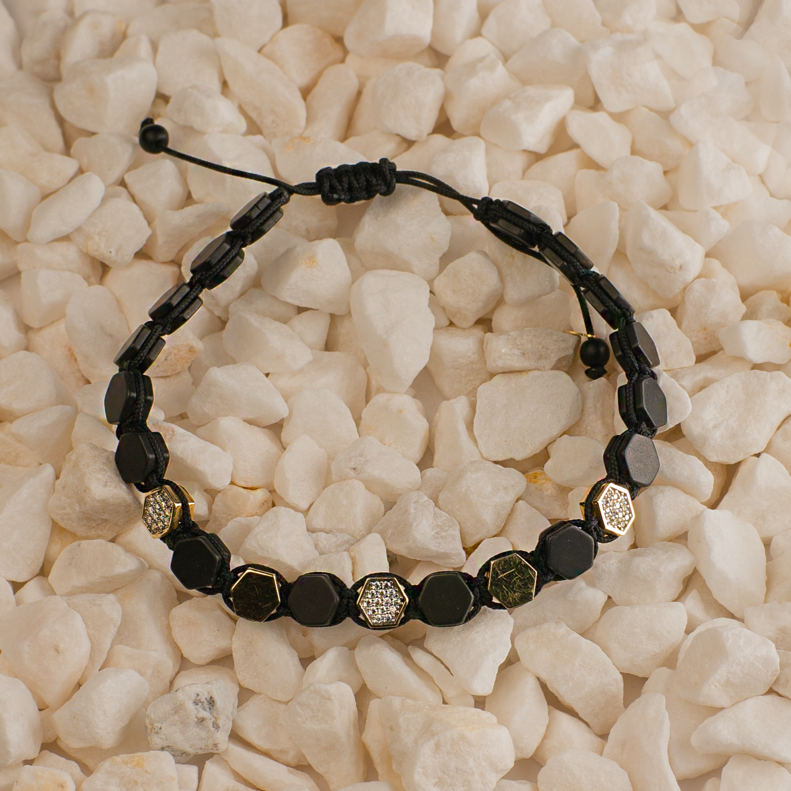 Brățară cu Șnur și Pietre Naturale Negre - Aur 585 (3.26g)
